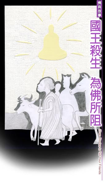 世尊得知这位国王竟然为了要救一人的性命,而杀害这么多无辜的众生,为其愚痴顽固深感悲悯。于是世尊带领弟子来到这个国家,在东城门外的路上遇见了国王与婆罗门,以及那些被驱赶而恐惧哀鸣的牲畜。