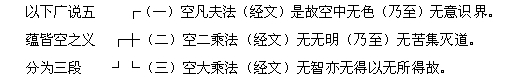 以上经文中,无字甚多,亦应与前空字解释相同。乃即有之无,非寻常有无之无也。若常人观之,以为无所得,则实有一无所得在,即有一无所得可得。非真无所得也。若真无所得或亦即是有所得。观下文所云佛与菩萨所得可知。