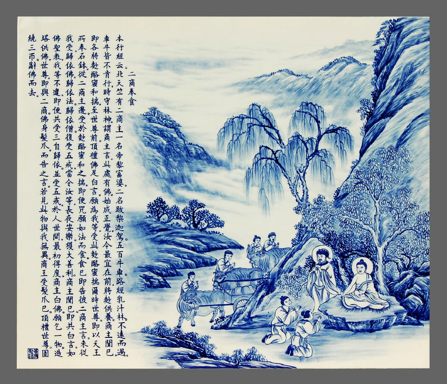 精美的佛教青花瓷板画